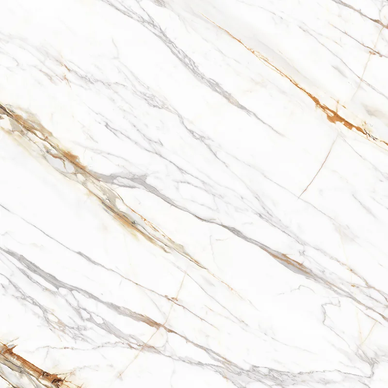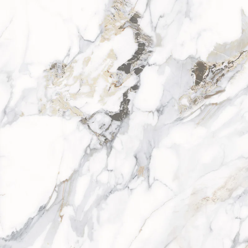 4. Carrara White Gold: Nền trắng nhạt với các đường vân vàng ba chiều, phù hợp với phong cách màu kem và phong cách Bắc Âu